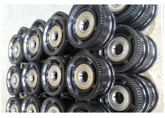 45# het staalsmeedstuk, de hardheid van de oppervlaktethermische behandeling van HRC45 ~ 52, het gebruik van HRB-lagers, kan aan de behoeften van divers het lopen mechanisme voldoen, kan ook volgens de vereisten van niet standaard modelwiel worden aangepast.